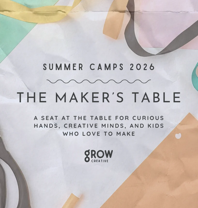 Summer Camps at Grow Creative are rooted in slow making, imagination, and hands-on skill building. Campers spend their days creating with real tools and beautiful materials—sewing, sculpting, building, and crafting in our warm, welcoming common arts & craft studio. It’s a week of focused creativity, new friendships, and the deep satisfaction that comes from making […]